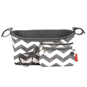 Organizador de carrinho skip hop chevron branco e cinza O organizador para carrinho de bebê da skip hop possui espaço para bebidas e outros itens com segurança, enquanto fornece acesso fácil aos seus itens mais importantes. Adaptando-se à maioria das barras e alças de carrinhos, o organizador inclui uma bolsinha frontal removível para pequenos objetos com um porta fones de ouvidos para celular.