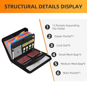 - Capacidade maior expandida: nosso organizador de arquivos sanfonado foi perfeitamente projetado com um tamanho grande exclusivo de 36,8 x 26,5 x 7 cm em comparação com pastas de arquivos comuns no mercado, a espessura do nosso organizador de pastas é mais do que o dobro de seus produtos, chegando a 7 cm. O organizador de arquivos sanfonado também foi projetado com uma estrutura de armazenamento que pode ser colada, de modo que a capacidade de armazenamento seja pelo menos duas vezes maior que a dos produtos de pasta comuns. Mesmo que esteja cheio de arquivos e itens, um organizador de pastas de arquivos ainda pode manter um bom estado sem deformação. Se você está preocupado com a insuficiência da capacidade do organizador de arquivos, esta é uma solução perfeita para substitutos.