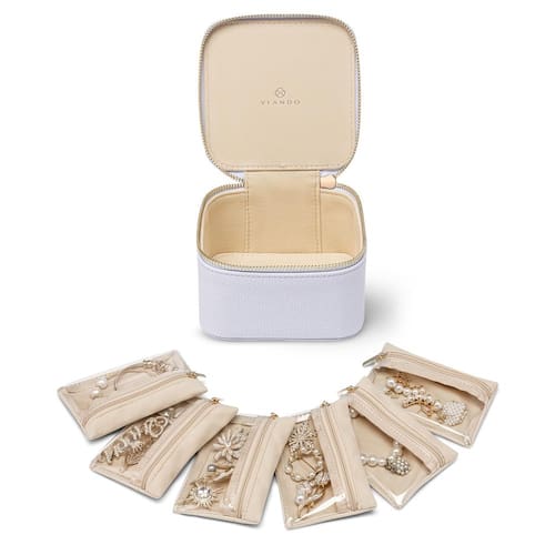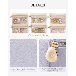 Vlando Organizador de estojo de joias de viagem, pequena caixa de joias com 6 bolsas de veludo com zíper, presentes de Natal para mulheres meninas amigas - roxo - Caixa de armazenamento de joias de couro de flor de lichia, incluindo 6 sacos de armazenamento transparentes de veludo, pode ser transportada separadamente ou colocada dentro do armazenamento da caixa de joias, para evitar que a oxidação das joias afete o uso - Alça de hardware de cardamomo personalizada, zíper para facilitar o armazenamento e puxar; forro de veludo para evitar arranhões nas joias; material de couro de grão de lichia, durável - Tamanho: 12 x 12 x 7,4 cm, bolsa de armazenamento de joias, caixa pequena e grande capacidade, a caixa de joias simples e generosa é muito adequada para mulheres que gostam de viajar, muitas vezes viajam para usar; diga adeus para sair quando as joias estiverem amarradas, não encontre problemas - 6 sacos de armazenamento portáteis podem armazenar grampos de cabelo, colares, pulseiras, pulseiras, anéis, brincos e outros acessórios; 2 maneiras de usar, você pode colocar a bolsa de veludo na caixa para guardar, você também pode tirar a bolsa da caixa direta para armazenar joias grandes, adequadas para suas várias necessidades - A bolsa de joias da moda é perfeita como presente para esposa, filha, amiga, aniversário, Dia das Mães, aniversário, presente de formatura, organizador de joias texturizado e prático permite que os usuários reduzam o problema de substituição frequente de bolsas de armazenamento