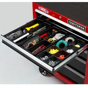 CRAFTSMAN Organizador de ferramentas, conjunto de gavetas de 3 peças com 14 compartimentos (CMST98018) - Serve para gavetas de até 22,5 cm L x 16,5 cm P x 7,6 cm A - Estrutura de plástico durável - Maximiza o espaço de armazenamento em suas gavetas com suas paredes finas - Três bandejas separadas com diferentes tamanhos de compartimentos significam que tudo tem seu lugar