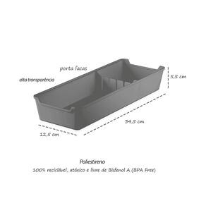 Contêm: 1 Organizador para Facas Dimensão: 34,5 x 12,5 x 5,5 cm 1 Organizador de Gaveta Dimensão: 34,5 x 12,5 x 5,5 cm Material: Poliestireno