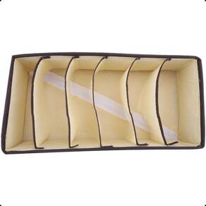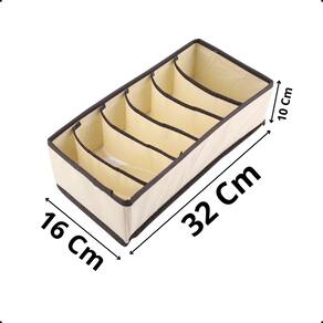 Organizadore para Gaveta - Tamanho 32cm x 16cm x 10cm Organizadore de gaveta é a solução ideal para manter suas peças íntimas, meias e acessórios perfeitamente organizados e ao alcance das mãos. Com divisórias bem estruturadas, você pode armazenar e visualizar rapidamente seus itens, economizando tempo e espaço. Vantagens do Produto: 1.Organização Prática e Funcional: Cada organizador possui 6 compartimentos espaçosos, proporcionando um lugar específico para cada item, o que evita bagunça e facilita a busca por suas roupas. 2.Versatilidade de Uso: Perfeito para guardar sutiãs, calcinhas, meias, gravatas, lenços e outros acessórios. É ideal para manter a gaveta organizada e seus itens protegidos. 3. Facilidade na Instalação: Os organizadores são leves e fáceis de posicionar em qualquer gaveta, sem necessidade de ferramentas. 4. Economia de Espaço: Com seu design compacto, os organizadores aproveitam ao máximo o espaço disponível, mantendo tudo em ordem sem ocupar muito espaço. Qualidade Garantida: - Material Durável: Confeccionado em material de alta qualidade, resistente e fácil de limpar, garantindo longa durabilidade e mantendo suas roupas bem protegidas. - Acabamento Premium: As bordas são reforçadas com costura de alta precisão, garantindo resistência e evitando desgaste ao longo do uso diário. Especificações do Produto: - Tamanho: 32cm x 16cm x 10cm - Material: Tecido não tecido (TNT) de alta resistência - Cor: Bege com bordas marrons - Quantidade: 1 unidade Marca: NeoBlue