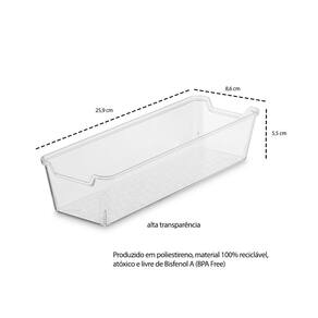 Contêm: 1 Organizador de Gaveta Dimensão: 25,9 x 8,6 x 5,5 cm Material: Poliestireno