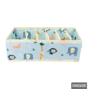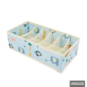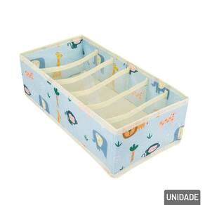 Organizador de Gaveta TNT 32,5x16,5cm 6 Divis Transforme a organização das suas gavetas em algo prático e divertido com o Organizador de Gavetas em TNT com 6 Divisórias, agora com uma fofa estampa de animais que dá um toque de charme e alegria ao seu dia a dia.\nCom medidas de 32,5cm de comprimento x 16,5cm de largura, esse organizador é ideal para manter itens como meias, calcinhas, cuecas, gravatas, lenços ou acessórios pequenos bem acomodados, separados e sempre à vista. Suas 6 divisórias internas ajudam a manter tudo em ordem, facilitando a rotina e otimizando o espaço das gavetas.\nEspecificações:\nMarca : TINGS\nTipo de material : TNT\nCores ou Estampa : Colorido\nDimensões do Produto : 10 X 32,5 X 16,5 CM\nDimensões da Embalagem : 47 X 10 X 1 CM\nPeso Bruto (Gramas) : 0.080