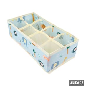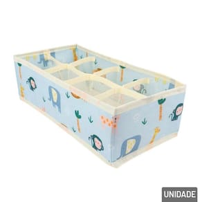 Organizador de Gaveta TNT 32,5x16,5cm 8 Divis Transforme a organização das suas gavetas em algo prático e divertido com o Organizador de Gavetas em TNT com 8 Divisórias, agora com uma fofa estampa de animais que dá um toque de charme e alegria ao seu dia a dia.\nCom medidas de 32,5cm de comprimento x 16,5cm de largura, esse organizador é ideal para manter itens como meias, calcinhas, cuecas, gravatas, lenços ou acessórios pequenos bem acomodados, separados e sempre à vista. Suas 6 divisórias internas ajudam a manter tudo em ordem, facilitando a rotina e otimizando o espaço das gavetas.\nEspecificações:\nMarca : TINGS\nTipo de material : TNT\nCores ou Estampa : Colorido\nDimensões do Produto : 10 X 32,5 X 16,5 CM\nDimensões da Embalagem : 47 X 10 X 1 CM\nPeso Bruto (Gramas) : 0.080