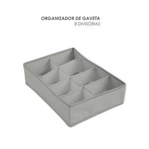 O organizador de gaveta com 8 divisórias transforma a maneira como você armazena suas peças, trazendo praticidade e um toque de organização ao seu dia a dia Especificações: Material: tnt Medidas: Comprimento: 32cm x largura: 24cm x altura: 12cm Conteúdo: 01 organizador de gaveta com 8 divisórias Cor enviada conforme disponibilidade Marca: Não Informado