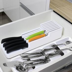Organizador de Gavetas Arthi - Divisórias Fixas e Formato Versátil O Organizador de Gavetas com Divisórias da Arthi (Ref. 5312) é a solução ideal para segmentar o espaço interno de suas gavetas, mantendo itens pequenos e médios separados, organizados e fáceis de encontrar. Seu formato alongado e estreito é perfeito para otimizar gavetas de diferentes profundidades. Características Físicas e Funcionais: Organização Segmentada: Possui divisórias fixas internas que criam compartimentos individuais, ideais para organizar talheres, utensílios menores. Material Plástico: Fabricado em plástico resistente, é leve, durável e fácil de limpar. Uso Multiuso: Perfeito para a cozinha, quarto, banheiro ou escritório. Marca: Arthi (Ref. 5312). Especificações Técnicas: Funcionalidade: Organizador de Gavetas com Divisórias. Dimensões: Comprimento 38,2 X Largura 11 X Altura 7,2cm. Material: Plástico.
