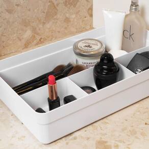 O Organizador De Gavetas Logic 4 Divisórias 35 x 20 x 7,5 cm é perfeito para organizar suas gavetas. Organize suas gavetas de cozinha, banheiro e escritório de forma simples, visual e prática.A linha traz diferentes tamanhos e cores que são fáceis de combinar e possuem modularidade entre si, permitindo diferentes soluções para organização conforme sua necessidade e criatividade. Os produtos possuem divisórias rígidas e fixas, são fabricados em material texturizado (Polipropileno) diminuindo a visibilidade de riscos e aranhões.Além de possuir cantos arredondados que não acumulam sujeira e facilitam a higienização. Encaixe, guarde e organize conforme a sua criatividade, a linha Logic vem para auxiliar na organização do dia a dia em vários ambientes da sua casa.INFORMAÇÕES TÉCNICASDimensões: LxAxP: 35x8x20 cmMaterial: PP (Polipropileno)CUIDADOSSugere-se higienizar com sabão neutro e esponja macia, evitando produtos abrasivos no processo de limpeza.CONTEÚDO DA EMBALAGEM 1 Organizador De Gavetas Logic 4 Divisórias 35 x 20 x 7,5 cmSOBRE NÓSSomos apaixonados pelo que fazemos e utilizamos o design como meio de fazer você se sentir em casa onde estiver.Criamos produtos com carinho e cuidado para atender as suas necessidades diárias, levando bem-estar, aconchego e conforto para seu lar.Somos minimalistas e funcionais pois queremos que você tenha um estilo de vida mais leve e organizado, para atingir o máximo do seu potencial.Prazer, somos Ou.