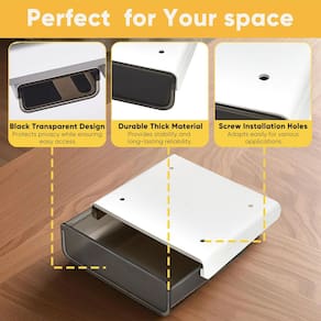 Otimize seu espaço de trabalho com este pacote de 2 gavetas embaixo da mesa, projetado para criar soluções eficientes de armazenamento sob a mesa. Estas gavetas embaixo da mesa oferecem uma maneira elegante e minimalista de manter seus materiais de escritório organizados. Se você precisa de um acessório de gaveta de mesa para canetas, blocos de notas ou pequenos dispositivos, ou procurando um organizador de mesa transparente para organizar seu espaço de trabalho. O recurso deslizante da gaveta embaixo da mesa permite fácil acesso, enquanto o design autoadesivo da gaveta sob a mesa garante uma instalação simples e sem ferramentas. Você também pode optar pela instalação do parafuso com os furos pré-perfurados, tornando-o adequado para itens mais pesados. Se você estiver trabalhando em casa ou no escritório, este organizador de armazenamento de mesa é um item essencial para manter seu espaço organizado. Perfeitas para armazenamento embaixo da mesa, essas gavetas de mesa acopláveis combinam sem esforço com sua decoração graças ao seu design preto transparente. Eles são espaçosos o suficiente para o uso diário e duráveis, o que os torna ideais para armazenar tudo, desde materiais de escritório para mulheres até eletrônicos e itens pessoais. Os organizadores rasos de gaveta ajudam a manter itens menores facilmente acessíveis. Este organizador de gaveta embaixo da mesa pode ser utilizado não apenas em seu escritório, mas também como uma solução de armazenamento sob a mesa em cozinhas, quartos ou até mesmo salas de estar. As gavetas removíveis para armários são versáteis e funcionais, oferecendo uma opção de armazenamento oculta e conveniente para espaços apertados. Use o bastão nas gavetas embaixo da mesa para maximizar o espaço sob sua mesa ou instale-o como uma prateleira embaixo da mesa para armazenamento adicional sem sacrificar o espaço na mesa. O armário de gaveta embaixo da mesa é feito com materiais de alta qualidade, garantindo uso duradouro. Suporta uma variedade de itens, como artigos de papelaria, carregadores ou até mesmo utensílios de cozinha, tornando-o um organizador perfeito sob a mesa para qualquer cômodo. Se você está procurando gavetas embaixo do armário ou uma unidade de gaveta para embaixo da mesa, este produto oferece versatilidade para atender a todas as suas necessidades de armazenamento. - ?FÁCIL INSTALAÇÃO?Este organizador de gaveta embaixo da mesa é fácil de instalar com tiras autoadesivas e furos pré-perfurados para parafusos. Ideal para armazenamento embaixo da mesa, oferecendo configuração flexível sem ferramentas ou perfuração - ?Alta aderência e estabilidade?Com fita autoadesiva forte, esta gaveta de mesa anexável oferece armazenamento seguro sem risco de queda. Ótimo para organizar seu espaço de trabalho com organizador de mesa de acrílico para vários itens - ?Design moderno e minimalista?Esta gaveta embaixo da mesa possui um design preto transparente que se encaixa perfeitamente na decoração moderna, protegendo sua privacidade e mantendo seu espaço elegante - ?Solução de economia de espaço?A gaveta deslizante sob a mesa oferece armazenamento conveniente e oculto, maximizando o espaço de trabalho enquanto mantém sua mesa organizada. Perfeito para espaços apertados e para manter uma área livre de bagunça - ?Armazenamento multifuncional?Esta gaveta embaixo da mesa pode armazenar itens essenciais de escritório, como canetas, carregadores ou itens pessoais. Seu design anexável o torna adequado para qualquer escritório ou configuração doméstica