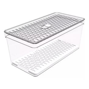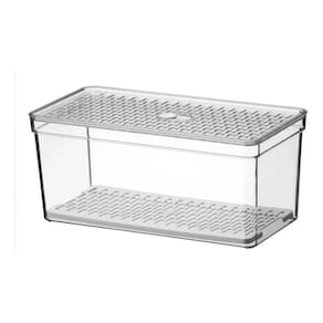 Organizador de geladeira grande frutas legumes com grade ========== sobre o produto ========== O organizador de geladeira grande frutas legumes é a solução ideal para manter seus alimentos frescos e organizados por mais tempo. Com um design inteligente, ele conta com uma grade removível que permite melhor circulação de ar, evitando o acúmulo de umidade e prolongando a vida útil de frutas, legumes e verduras. Feito em plástico transparente de alta qualidade, ele facilita a visualização do conteúdo, ajudando a otimizar o espaço da geladeira e mantendo tudo ao seu alcance de forma prática e higiênica. Este organizador é essencial para quem busca eficiência na cozinha e quer garantir mais frescor aos alimentos. ========== especificações ========== Grade removível, que facilita a ventilação e evita o acúmulo de umidade. Ideal para armazenar frutas, legumes e verduras com segurança. Material plástico transparente de alta durabilidade, fácil de limpar. Design grande e prático, otimiza o espaço interno da geladeira. ========== ficha técnica ========== Medidas: 30,5 x 15,5 x 13,5 cm Material: poliestireno ps + polipropileno pp Marca: crippa : 3 meses Estamos online para quaisquer dúvidas, Agradecemos e aguardamos o seu pedido. P: o grade é removível para facilitar a limpeza R: sim, o cesto é removível, facilitando a limpeza e ventilação dos alimentos. P: posso armazenar outros tipos de alimentos além de frutas e legumes R: sim, o organizador é versátil e pode ser para diversos alimentos, como queijos, frios e embutidos. P: é seguro para contato com alimentos R: sim, o material plástico é seguro para armazenar alimentos e fácil de higienizar. P: o produto é novo ou Marca: Não Informado