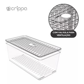 Organizador de geladeira grande frutas legumes com grade ========== sobre o produto ========== O organizador de geladeira grande frutas legumes é a solução ideal para manter seus alimentos frescos e organizados por mais tempo. Com um design inteligente, ele conta com uma grade removível que permite melhor circulação de ar, evitando o acúmulo de umidade e prolongando a vida útil de frutas, legumes e verduras. Feito em plástico transparente de alta qualidade, ele facilita a visualização do conteúdo, ajudando a otimizar o espaço da geladeira e mantendo tudo ao seu alcance de forma prática e higiênica. Este organizador é essencial para quem busca eficiência na cozinha e quer garantir mais frescor aos alimentos. ========== especificações ========== Grade removível, que facilita a ventilação e evita o acúmulo de umidade. Ideal para armazenar frutas, legumes e verduras com segurança. Material plástico transparente de alta durabilidade, fácil de limpar. Design grande e prático, otimiza o espaço interno da geladeira. ========== ficha técnica ========== Medidas: 30,5 x 15,5 x 13,5 cm Material: poliestireno ps + polipropileno pp Marca: crippa : 3 meses Estamos online para quaisquer dúvidas, Agradecemos e aguardamos o seu pedido. P: o grade é removível para facilitar a limpeza R: sim, o cesto é removível, facilitando a limpeza e ventilação dos alimentos. P: posso armazenar outros tipos de alimentos além de frutas e legumes R: sim, o organizador é versátil e pode ser para diversos alimentos, como queijos, frios e embutidos. P: é seguro para contato com alimentos R: sim, o material plástico é seguro para armazenar alimentos e fácil de higienizar. P: o produto é novo ou