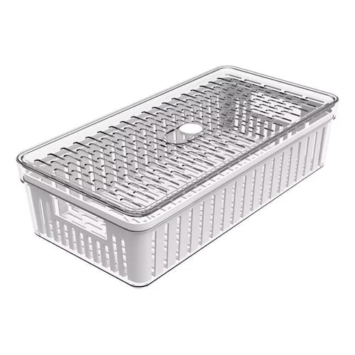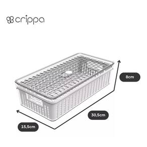 Organizador de geladeira médio frutas legumes com cesto ========== sobre o produto ========== O organizador de geladeira médio frutas legumes com cesto é a solução ideal para manter seus alimentos frescos e organizados por mais tempo. Com um design inteligente, ele conta com um cesto removível que permite melhor circulação de ar, evitando o acúmulo de umidade e prolongando a vida útil de frutas, legumes e verduras. Feito em plástico transparente de alta qualidade, ele facilita a visualização do conteúdo, ajudando a otimizar o espaço da geladeira e mantendo tudo ao seu alcance de forma prática e higiênica. Este organizador é essencial para quem busca eficiência na cozinha e quer garantir mais frescor aos alimentos. ========== especificações ========== Cesto removível, que facilita a ventilação e evita o acúmulo de umidade. Ideal para armazenar frutas, legumes e verduras com segurança. Material plástico transparente de alta durabilidade, fácil de limpar. Design grande e prático, otimiza o espaço interno da geladeira. ========== ficha técnica ========== Medidas: 30,5 x 15,5 x 8cm Material: poliestireno ps + polipropileno pp Marca: crippa : 3 meses Estamos online para quaisquer dúvidas, Agradecemos e aguardamos o seu pedido. P: o cesto é removível para facilitar a limpeza R: sim, o cesto é removível, facilitando a limpeza e ventilação dos alimentos. P: posso armazenar outros tipos de alimentos além de frutas e legumes R: sim, o organizador é versátil e pode ser para diversos alimentos, como queijos, frios e embutidos. P: é seguro para contato com alimentos R: sim, o material plástico é seguro para armazenar alimentos e fácil de higienizar. P: o produto é novo ou Marca: Não Informado
