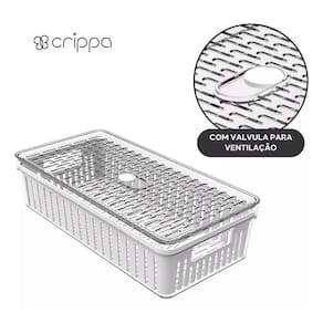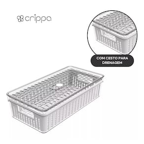 Organizador de geladeira médio frutas legumes com cesto ========== sobre o produto ========== O organizador de geladeira médio frutas legumes com cesto é a solução ideal para manter seus alimentos frescos e organizados por mais tempo. Com um design inteligente, ele conta com um cesto removível que permite melhor circulação de ar, evitando o acúmulo de umidade e prolongando a vida útil de frutas, legumes e verduras. Feito em plástico transparente de alta qualidade, ele facilita a visualização do conteúdo, ajudando a otimizar o espaço da geladeira e mantendo tudo ao seu alcance de forma prática e higiênica. Este organizador é essencial para quem busca eficiência na cozinha e quer garantir mais frescor aos alimentos. ========== especificações ========== Cesto removível, que facilita a ventilação e evita o acúmulo de umidade. Ideal para armazenar frutas, legumes e verduras com segurança. Material plástico transparente de alta durabilidade, fácil de limpar. Design grande e prático, otimiza o espaço interno da geladeira. ========== ficha técnica ========== Medidas: 30,5 x 15,5 x 8cm Material: poliestireno ps + polipropileno pp Marca: crippa : 3 meses Estamos online para quaisquer dúvidas, Agradecemos e aguardamos o seu pedido. P: o cesto é removível para facilitar a limpeza R: sim, o cesto é removível, facilitando a limpeza e ventilação dos alimentos. P: posso armazenar outros tipos de alimentos além de frutas e legumes R: sim, o organizador é versátil e pode ser para diversos alimentos, como queijos, frios e embutidos. P: é seguro para contato com alimentos R: sim, o material plástico é seguro para armazenar alimentos e fácil de higienizar. P: o produto é novo ou