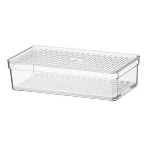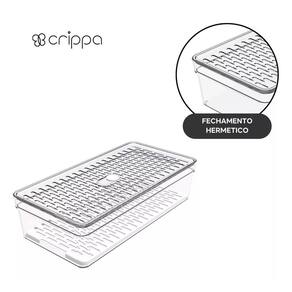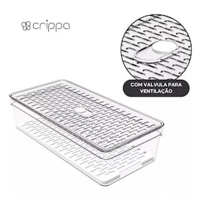 Organizador de geladeira médio frutas legumes com grade ========== sobre o produto ========== O organizador de geladeira médio frutas legumes com grade é a solução ideal para manter seus alimentos frescos e organizados por mais tempo. Com um design inteligente, ele conta com uma grade removível que permite melhor circulação de ar, evitando o acúmulo de umidade e prolongando a vida útil de frutas, legumes e verduras. Feito em plástico transparente de alta qualidade, ele facilita a visualização do conteúdo, ajudando a otimizar o espaço da geladeira e mantendo tudo ao seu alcance de forma prática e higiênica. Este organizador é essencial para quem busca eficiência na cozinha e quer garantir mais frescor aos alimentos. ========== especificações ========== Grade removível, que facilita a ventilação e evita o acúmulo de umidade. Ideal para armazenar frutas, legumes e verduras com segurança. Material plástico transparente de alta durabilidade, fácil de limpar. Design grande e prático, otimiza o espaço interno da geladeira. ========== ficha técnica ========== Medidas: 30,5 x 15,5 x 8cm Material: poliestireno ps + polipropileno pp Marca: crippa : 3 meses Estamos online para quaisquer dúvidas, Agradecemos e aguardamos o seu pedido. P: a grade é removível para facilitar a limpeza R: sim, o cesto é removível, facilitando a limpeza e ventilação dos alimentos. P: posso armazenar outros tipos de alimentos além de frutas e legumes R: sim, o organizador é versátil e pode ser para diversos alimentos, como queijos, frios e embutidos. P: é seguro para contato com alimentos R: sim, o material plástico é seguro para armazenar alimentos e fácil de higienizar. P: o produto é novo ou