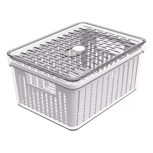 Organizador de geladeira pequenho frutas legumes com cesto ========== sobre o produto ========== O organizador de geladeira pequeno frutas legumes com cesto é a solução ideal para manter seus alimentos frescos e organizados por mais tempo. Com um design inteligente, ele conta com um cesto removível que permite melhor circulação de ar, evitando o acúmulo de umidade e prolongando a vida útil de frutas, legumes e verduras. Feito em plástico transparente de alta qualidade, ele facilita a visualização do conteúdo, ajudando a otimizar o espaço da geladeira e mantendo tudo ao seu alcance de forma prática e higiênica. Este organizador é essencial para quem busca eficiência na cozinha e quer garantir mais frescor aos alimentos. ========== especificações ========== Cesto removível, que facilita a ventilação e evita o acúmulo de umidade. Ideal para armazenar frutas, legumes e verduras com segurança. Material plástico transparente de alta durabilidade, fácil de limpar. Design compacto e prático, otimiza o espaço interno da geladeira. ========== ficha técnica ========== Medidas: 20,5 x 15,5 x 10cm Material: poliestireno ps + polipropileno pp Marca: crippa : 3 meses Estamos online para quaisquer dúvidas, Agradecemos e aguardamos o seu pedido. P: o cesto é removível para facilitar a limpeza R: sim, o cesto é removível, facilitando a limpeza e ventilação dos alimentos. P: posso armazenar outros tipos de alimentos além de frutas e legumes R: sim, o organizador é versátil e pode ser para diversos alimentos, como queijos, frios e embutidos. P: é seguro para contato com alimentos R: sim, o material plástico é seguro para armazenar alimentos e fácil de higienizar. P: o produto é novo ou Marca: Não Informado