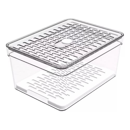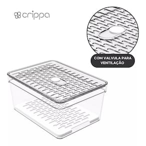 Organizador de geladeira pequenho frutas legumes com grade ========== sobre o produto ========== O organizador de geladeira pequeno com grade é a solução ideal para manter seus alimentos frescos e organizados por mais tempo. Com um design inteligente, ele conta com uma grade removível que permite melhor circulação de ar, evitando o acúmulo de umidade e prolongando a vida útil de frutas, legumes e verduras. Feito em plástico transparente de alta qualidade, ele facilita a visualização do conteúdo, ajudando a otimizar o espaço da geladeira e mantendo tudo ao seu alcance de forma prática e higiênica. Este organizador é essencial para quem busca eficiência na cozinha e quer garantir mais frescor aos alimentos. ========== especificações ========== Grade removível, que facilita a ventilação e evita o acúmulo de umidade. Ideal para armazenar frutas, legumes e verduras com segurança. Material plástico transparente de alta durabilidade, fácil de limpar. Design compacto e prático, otimiza o espaço interno da geladeira. ========== ficha técnica ========== Medidas: 20,5 x 15,5 x 10cm Material: poliestireno ps + polipropileno pp Marca: crippa : 3 meses Estamos online para quaisquer dúvidas, Agradecemos e aguardamos o seu pedido. P: a grade é removível para facilitar a limpeza R: sim, o cesto é removível, facilitando a limpeza e ventilação dos alimentos. P: posso armazenar outros tipos de alimentos além de frutas e legumes R: sim, o organizador é versátil e pode ser para diversos alimentos, como queijos, frios e embutidos. P: é seguro para contato com alimentos R: sim, o material plástico é seguro para armazenar alimentos e fácil de higienizar. P: o produto é novo ou Marca: Não Informado