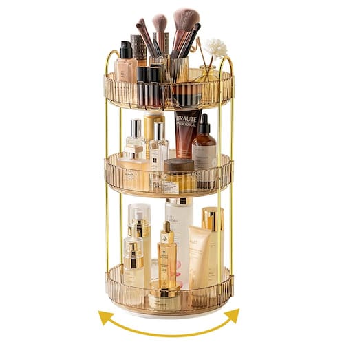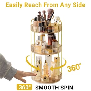 Organizador de maquiagem Asayuee 360 Rotating 3 Tier Gold ABS