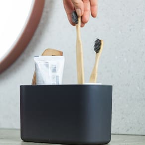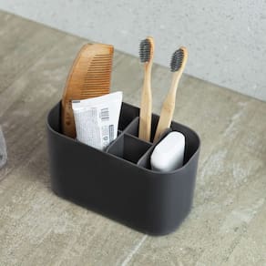 O Organizador de Bancada Bold proporciona organização para a bancada do banheiro ou penteadeira, facilitando sua rotina de beleza e higiene pessoal. Possui 6 compartimentos de diferentes tamanhos para maquiagens, cosméticos e produtos de skincare.
