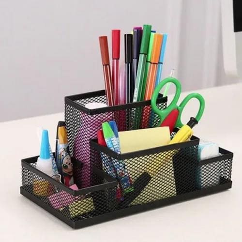 Pode ser utilizado para guardar/organizar lápis, caneta, clips, chaves, lembretes/post it, apontador, borracha, grampeador e até mesmo celular.