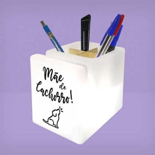 Decore qualquer ambiente com o Organizador de Mesa Iluminado Mãe de Dog, ele vai encantar o seu quarto, aquele seu cantinho especial e até mesmo o seu escritório. Além de ser um item incrível, ele vai deixar a sua mesa mais organizada de uma forma mais divertia.