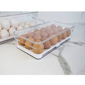 Organizador De Ovos Para Geladeira Empilhável Com Tampa Porta Ovos 18 UN Cozinha Clear Fresh OU. #Caixa De Armazenamento Para Ovos #Porta-Ovos De Geladeira Empilhável #Linha Clear Fresh OU Garantia: 90 dias / Peso: 385g / Cores: Natural e Branco / Ref: OF100NT Dimensões: 30cm (C) x 15cm (L) x 7cm (A) Capacidade: 18 Ovos. Conteúdo: 01 Organizador de Geladeira Porta Ovos. Limpeza e Cuidados: - Lavar com água e sabão neutro utilizando esponja macia, seguido de pano seco; - Não utilizar produtos químicos ou abrasivos na limpeza. Evitar batidas. Detalhes do Produto: - Possui bandeja interna removível com 18 cavidades, impedindo o atrito entre os ovos e permitindo o fluxo de ar interno; - Possui alças laterais embutidas para transporte; - Não suporta máquina de lavar; - Não suporta micro-ondas; - Livre de Bisphenol A; - Não suporta freezer; - Suporta geladeira; - Empilhável. Material: - Polipropileno: Alta resistência a impactos e ao calor. Não transfere odor, nem gosto aos alimentos. Atóxico, pode entrar em contato com alimentos. Resistência à água fervente, suportando até 150° C; - Poliestireno: Translúcido com baixa resistência a impactos. Ótima transparência e alto brilho. Não transfere odor, nem gosto aos alimentos. Atóxico, pode entrar em contato com alimentos. O Organizador de Ovos Empilhável com Tampa da linha Clear Fresh dispõe de bandeja interna removível com 18 cavidades proporcionando o encaixe perfeito dos ovos com segurança, permitindo o fluxo de ar interno, melhorando a conservação e evitando a deterioração precoce. Confeccionada em material de alta qualidade e livre de BPA, a caixa de armazenamento de ovos pode ser levada a geladeira e por ser transparente, permite que você visualize a quantidade de ovos armazenados com facilidade. A sua rotina vai ficar muito mais prática e saudável.