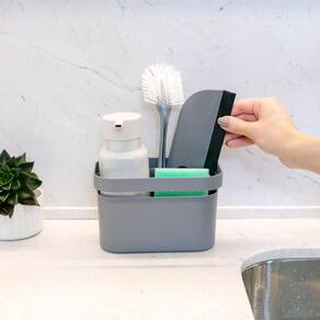 O Organizador De Pia Trium Max é um produto compacto, mas com espaço perfeito para organizar todos os produtos de uso da pia, com capacidade para armazenagem de até dois frascos de detergente, esponja, escova e demais utensílios para limpeza, além da exclusiva borda para colocação do pano. A versatilidade do Organizador Max é tamanha que pode ser utilizado com outros produtos da linha, comportando o Dispenser Para Detergente Premium e o Rodo De Pia Compacto. Por não possuir furação em seu interior, pode ser colocado em diversos espaços, seja na bancada, dentro da pia ou em armário.Praticidade, beleza e design são as características da linha trium pensadas para proporcionar qualidade na organização da sua pia.Fabricada em material resistente e flexível (Polipropileno), além do plástico ser texturizado impedindo riscos e facilitando a higiene.Praticidade, beleza e design são as características da linha Trium pensadas para proporcionar qualidade na organização da sua pia.INFORMAÇÕES TÉCNICASMaterial: PP (Polipropileno)CUIDADOSSugere-se higienizar com sabão neutro e esponja macia, evitando produtos abrasivos no processo de limpeza.CONTEÚDO DA EMBALAGEM1 Organizador De Pia Trium MaxSOBRE NÓSSomos apaixonados pelo que fazemos e utilizamos o design como meio de fazer você se sentir em casa onde estiver.Criamos produtos com carinho e cuidado para atender as suas necessidades diárias, levando bem-estar, aconchego e conforto para seu lar.Somos minimalistas e funcionais pois queremos que você tenha um estilo de vida mais leve e organizado, para atingir o máximo do seu potencial.Prazer, somos Ou.
