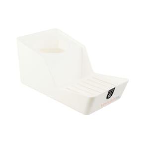 Possui um porta detergente e um porta sabão, que não entra em contato com a água, pois ela fica armazenada no fundo do organizador, com a parte colorida que pode ser removida para facilitar a sua limpeza.