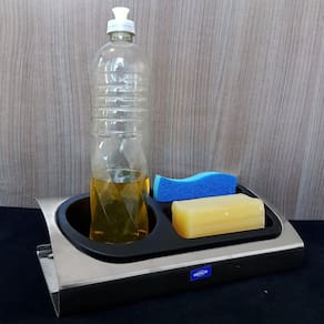 O organizador de pia da Brinox possui 3 divisões para detergente, sabão em barra e esponja. Fabricado em Aço Inox e PP e com um design que se encaixa a qualquer ambiente, o porta detergente manterá sua pia organizada e com os produtos sempre a mão.