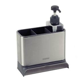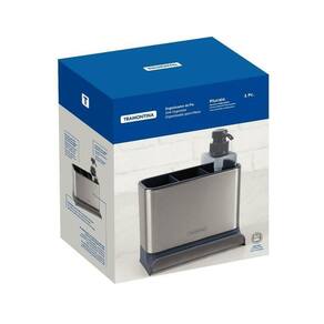 Organizador de Pia Tramontina Plurale em Plástico e Aço Inox Otimize o espaço em sua pia com o organizador de pia Tramontina Plurale em plástico e aço inox e deixe seu dia a dia na cozinha muito mais prático. Com um design inteligente e funcional, ele é perfeito para manter sua pia arrumada e seus itens de limpeza sempre ao alcance. Desenvolvido na posição vertical, ele economiza espaço em sua bancada, mantendo tudo organizado de forma eficiente, sem reter umidade, pois sua bandeja de esponja é elevada, seu design é perfurado e conta com bandeja de gotejamento, que ainda permitem o fluxo de ar e facilitam a remoção eficiente da água. O organizar de pia Tramontina Plurale ainda combina materiais de alta qualidade para garantir durabilidade e resistência: a garrafa do sabão líquido é feita em PET, enquanto o corpo do organizador é uma combinação de aço inox, polipropileno e ABS. Essa composição garante uma estrutura robusta e resistente, pronta para enfrentar o uso diário na sua cozinha, que certamente exige uma limpeza rápida e prática
