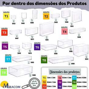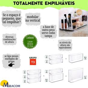 Dimensões e combinações milimétricas: Os tamanhos (comprimento e profundidade) dos organizadores formam um padrão único no mercado porque são produzidos com intervalos de 7,3cm, ou seja, são múltiplos de 7,3cm, o que faz com que formem um nicho perfeito com diferentes espaços de organização em um só lugar, dependendo da sua necessidade. Basta definir o espaço que deseja organizar e escolher o tamanho de cada caixa organizadora para formá-lo. Próprio para organização de objetos de diversos tamanhos.