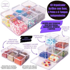- Os organizadores acompanham 6 tampas e 1 base.