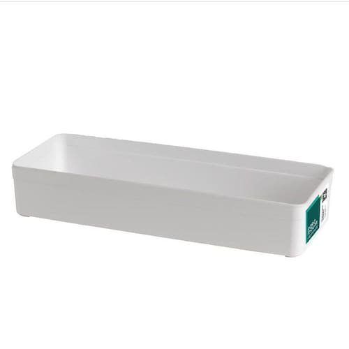 Organizador De Plástico Multiuso Branco 40x15x7,5CM Ideal para organizar objetos, o que possibilita várias combinações de guardados, seja ele na sua gaveta, no armário da cozinha ou até mesmo em cima da mesa. Multifuncional, leve e resistente o organizador é feito 100% em Poliestireno, é lavável e possui uma qualidade que proporcionará um ambiente organizado e moderno. Características Técnicas: Comprimento: 40cmLargura:15cmAltura: 7,5cmMaterial: PoliestirenoPossui Tampa: Não