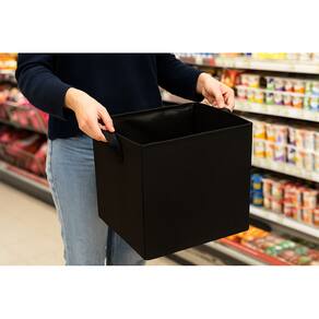 Dimensões: Largura 28cm, Altura 30 cm | Profundidade 28 cm | Profundidade 28 cm | Peso 580g Material: TNT 80g | Estrutura de cardboard reforçado| Poliéster Cor padrão: Preto