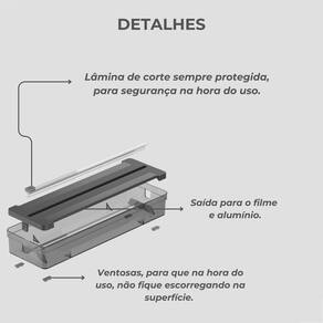 Facilidade de Uso: O cortador integrado facilita o corte preciso, tornando o uso de papel alumínio e filme plástico mais rápido e seguro.