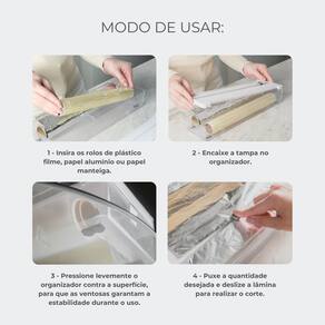 Organizador de Rolos para Alumínio e Papel Filme com Cortador Integrado