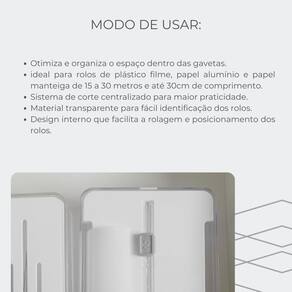 Design Inteligente: Desenvolvido para acomodar rolos de papel alumínio e papel filme, oferecendo fácil acesso e troca rápida.