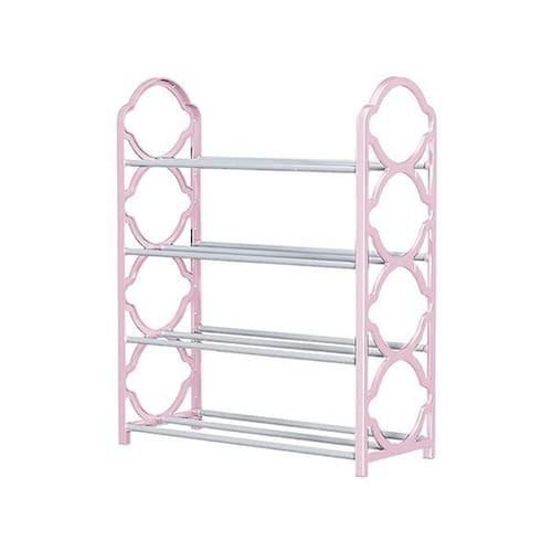 Especificações Técnicas: - Material: Plástico resistente e hastes de aço; - Cor: Rosa; - Quantidade de Andares: 4; - Capacidade: Varia de acordo com o tipo e tamanho dos calçados.