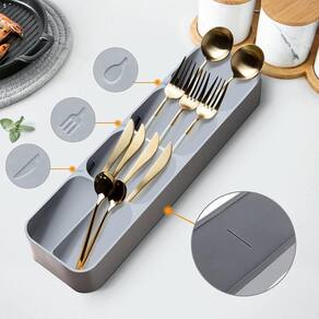 Organizador de Talheres - A Solução Prática para sua Cozinha!Dimensões ideais: 39,5 cm de comprimento, 11 cm de largura e 5,5 cm de alturaPerfeito para acomodar talheres e utensílios de forma organizadaFabricado em plástico resistente e durável, leve e fácil de limparDesign funcional com compartimentos internos para separar garfos, facas e colheresVersátil: adapta-se a diferentes tipos de gavetas e pode ser como bandejaSuperfície lisa que facilita a higienização com pano úmido ou água com sabãoUm item essencial para quem busca organização com praticidade e estilo
