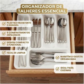Ideal para organizar a gaveta da cozinha, o Organizador de talheres é muito funcional, mantendo sempre o ambiente organizado e higienizado. Com acabamento liso, além de proporcionar um aspecto elegante, facilita na hora de fazer a limpeza.
