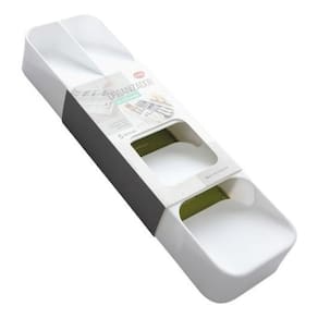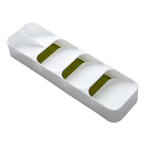 Especificações: - Material: Plástico resistente - Dimensões: Comprimento: 40cm, Largura: 11cm, Altura: 5.5cm - Divisórias de tamanhos diferentes para acomodar talheres variados - Design inteligente para maximizar o espaço da gaveta - Leve e portátil
