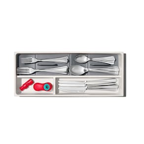 Organizador De Talheres Para Gaveta Expansível Com 3 Compartimentos 6x41x14cm Oxo O novo organizador de gavetas da OXO é perfeito para cozinhas com gavetas apertadas e rasas. Nosso Organizador é dividido em seções que garantem que seus utensílios permaneçam empilhados para economizar espaço. Os pés antiderrapantes mantêm o Organizador no lugar quando você abre e fecha a gaveta.O design que maximiza o espaço apresenta cantos quadrados para eliminar lacunas e oferecer uma aparência limpa e personalizada em suas gavetas. A bandeja é removível para uma limpeza completa.Ficha técnica:- Código: 4080570753- Marca: OXO- Conteúdo da Embalagem: 1 Organizador- Especificações do produto:Seções divididas que mantêm seus utensílios bem empilhados e organizadosPés antiderrapantes que mantêm o organizador no lugar no abrir e fechar da gavetaCantos quadrados eliminam lacunas nas gavetas para uma aparência limpaBandeja removível para limpeza fácil e completa- Material: Plástico- Peso: 0,48kg- Dimensões com embalagem: 6,35 x 41,78 x 17,02CM (AxLxP)- Dimensões do produto: 5,9 cm x 17,1 x 41,5cm (AxLxC)- Garantia: 90 Dias - Contra defeito de fabricação Sobre a Marca - Há mais de 25 anos atrás, Sam Farber percebeu que sua esposa, Betsey, estava tendo problemas para segurar confortavelmente o seu peeler por conta da artrite, o que o fez pensar: por que as ferramentas comuns da cozinha costumam machucar as mãos? Por que não existem ferramentas confortáveis e fáceis de usar? E assim ele descobriu uma oportunidade de ajudar não só sua esposa, como tambem diversas outras pessoas. Desde então, a OXO criou em toda sua história mais de 1000 diferentes produtos para diversas finalidades e áreas da casa, e todos sob o conceito do Design Universal, que tem como foco a facilidade de utilização, a qualidade, a funcionalidade e a eficiência comprovada.