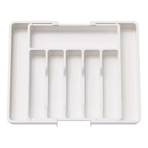 Este organizador de talheres expansível é a solução ideal para manter seus utensílios sempre no lugar certo. Com sistema ajustável de 33 a 57 cm de largura, adapta-se facilmente a diferentes tamanhos de gavetas, otimizando o espaço e garantindo muito mais organização no dia a dia.