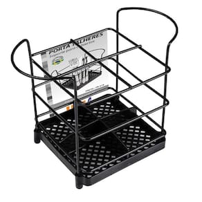 O porta talheres preto da Utimil é uma solução prática para organizar seus talheres e mantê-los sempre a mão. Produzido em metal cromado com base em polipropileno, é resistente e funcional. Possui 4 divisórias internas que facilitam a separação e organização de garfos, facas, colheres e colheres de sobremesa. Por ser leve e compacto o suporte pode ser levado para a mesa, armário ou bancada, facilitando a rotina na cozinha.