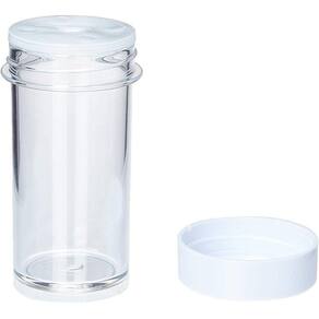 Os potes são transparentes com tampa branca. Isto permite boa visualização do conteúdo interno;