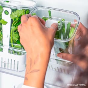 O Organizador de Temperos Clear Fresh OU 2,3 Litros promove frescor prolongado para os alimentos, para uma rotina mais saudável e sem desperdícios. Seu armazenamento inteligente aumenta a durabilidade dos temperos deixando-os sempre frescos e prontos para o preparo. Seu design clean traz mais beleza e sofisticação para a sua geladeira. Sua transparência possibilita a visualização dos alimentos e garante a organização do ambiente. Possui tamanho ideal para uso na porta da geladeira, para facilitar o acesso aos temperos. Transparência, beleza e cuidado com o alimento são características da linha Clear Fresh, perfeitas para auxiliar na organização da sua geladeira e facilitar o seu dia a dia.
