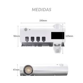 Organizador com dispensador de pasta e porta escova de dentes Produto inovador e revolucionário, nosso incrível esterilizador e dispensador de pastas 3 em 1, age com luzes ultravioletas nas suas escovas eliminando 99% de germes e bactérias, a forte luz fotocalisadora age diretamente no dna bacteriano eliminiando-o de vez. Permite guardar até 4 escovas dentais e possui um sistema de dispenser de pasta de dente, evitando assim o desperdício.