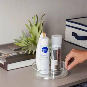 Características: - 18cm (diâmetro) x 5cm (altura) - Material: Acrílico - Para maquiagens ou até sua cozinha.