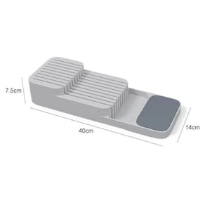 Armazenar facas afiadas nas gavetas pode ser perigoso e também pode danificar as lâminas caras. Este organizador de facas de 2 camadas é a solução perfeita proporcionando armazenamento seguro e fácil acesso a uma variedade de facas de cozinha.