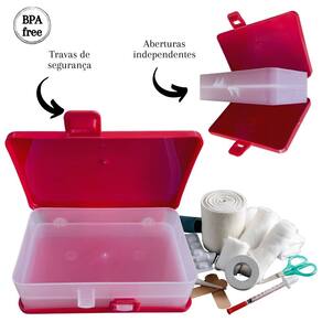 Conjunto com 3 unidades. Organizador plástico com 2 divisórias. As divisórias são independentes e possuem trava para maior segurança no transporte. Ideal para guardar os itens essenciais de primeiros socorros como bandagens adesivas, comprimidos, tesourinha, gazes, etc. Cada divisórias possui 11cm de comprimento, 6,5cm de largura e 0,8cm de altura. Por ser compacto, é perfeito para organizar pequenos medicamentos na bolsa, gaveta, armário, ou até no bolso. Sua decoração com tecnologia intra imagem permite maior durabilidade ao desenho, sem sair ou desbotar. É produzida em material atóxico e livre de BPA.