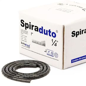 Organizador Fios E Cabos Spiraduto 1/4 Preto - 1 Metro O Spiraduto 1/4 permite várias composições, além de proteger os fios e cabos. Ele é produzido em manômero, uma espécie de plástico super resistente e flexível. Muito utilizado em fiação de computadores, sistemas de circuito interno de câmeras, painéis de televisão, home theather, vídeo games, entre outros. Não deixe seus cabos à mostra, organize com facilidade e segurança!